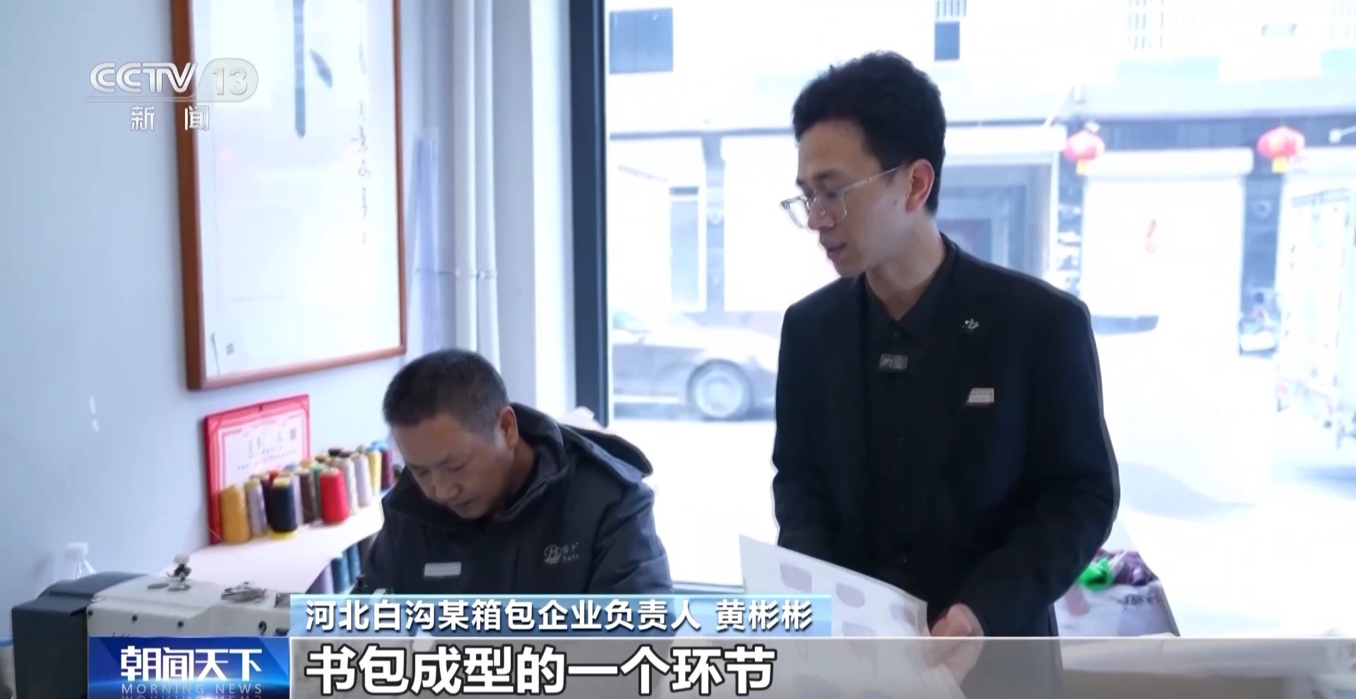 河北白沟某箱包公司厂长黄彬彬:我们开发了很多新产品,所以每天能推出十几套新产品。最后要完成的是一些书包的成型。这个硕士已经有近30年的经验了。由于他们熟悉从缝制到后整理的所有流程,因此工作效率极高。