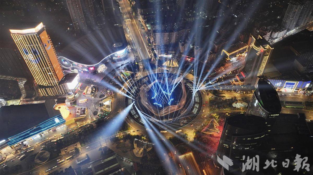 12月30日晚武汉光谷2025-2026年跨年活动以色彩表演和激光秀为特色,梦幻光影交织科技感。