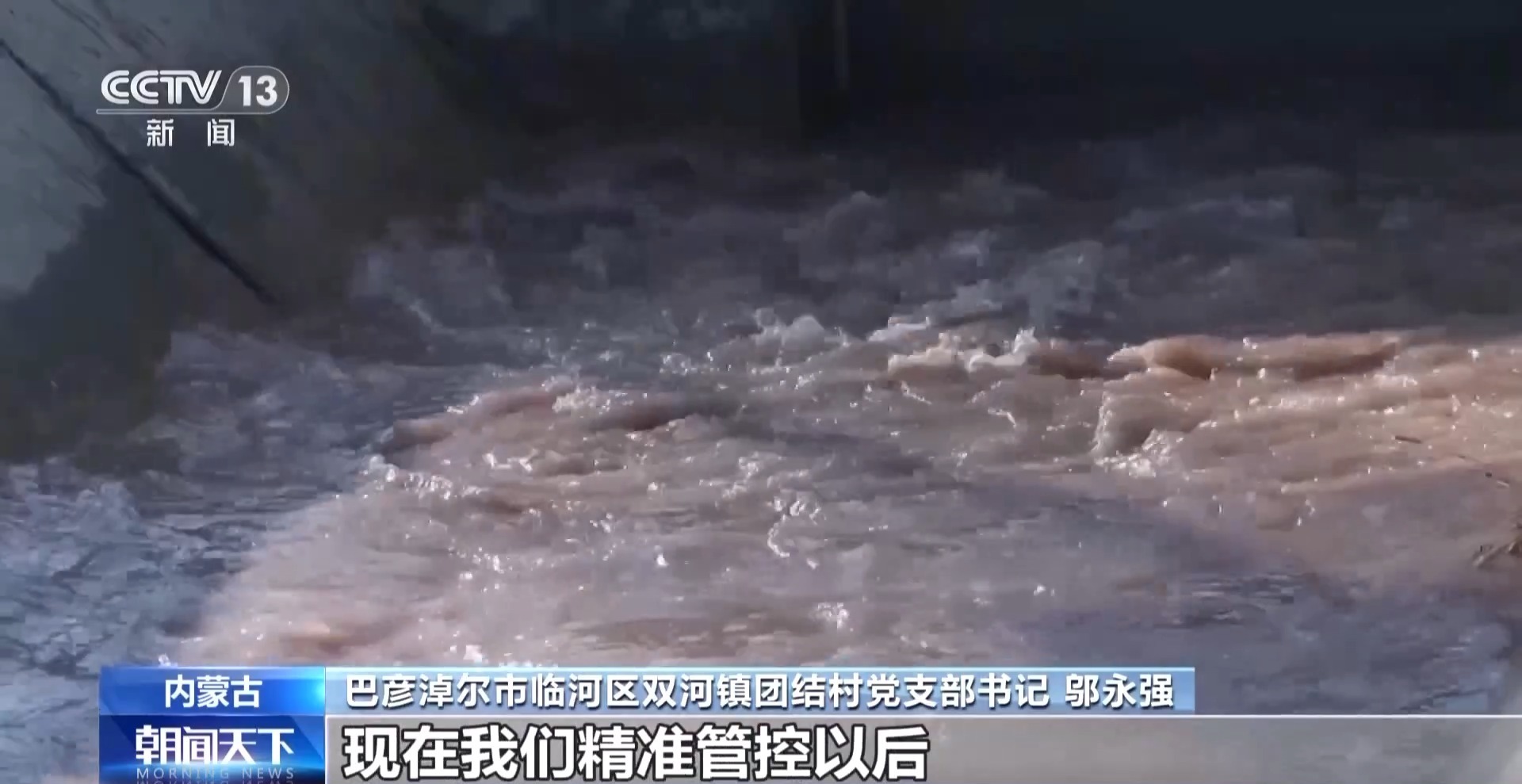 巴彦淖尔市临河区双河镇团结村党支部书记吴永强:以前大面积流水,每亩用水250至260立方米。现在我们有了精确的控制,每μ150立方米的水就足够了。