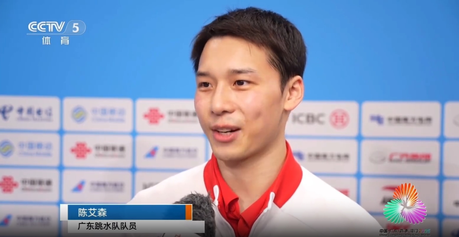 陈艾森坦诚讲述了自己的跳水运动员生涯以及上届全国比赛,表示自己很幸运,拼尽全力,再次帮助广东队夺得男子团体冠军。以在全国比赛中获得七枚金牌结束了跳水运动员生涯的陈艾森表示,他并不后悔,并计划在跳水生涯中继续闪耀。