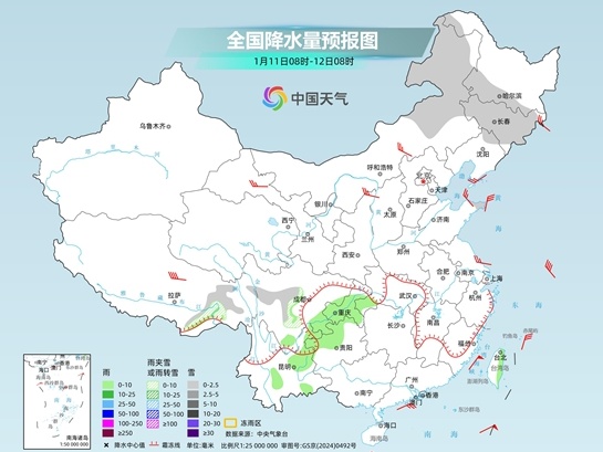 受冷空气影响,今日(1月11日)我国东北地区、黄淮、江南等地区气温下降。部分地区近期气温最低,请注意身体健康。下周,冷空气强度预计整体减弱,中东部大部地区气温波动加大,昼夜温差加大。此外,今明两天全国大部地区仍将出现偏少雨格局,仅东北、西南地区雨雪天气较多。